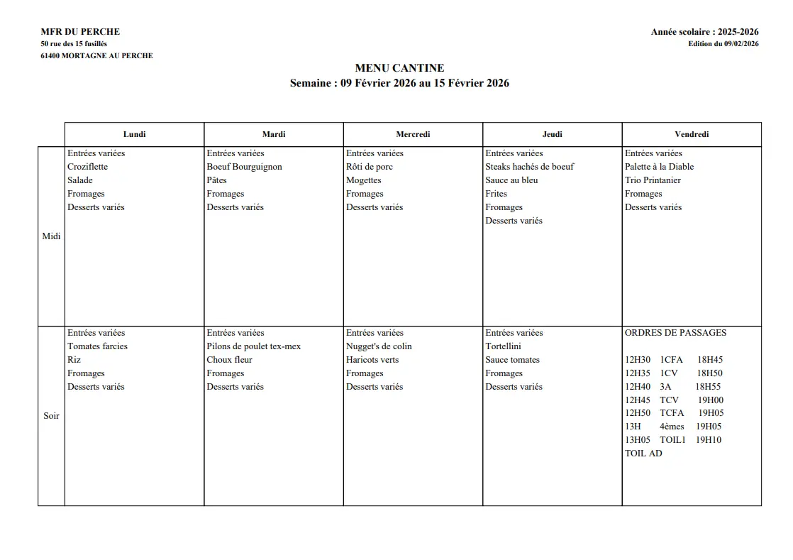 Découvrez le menu de cantine de la semaine du 09 au 15 Janvier : repas équilibrés, plats variés et informations pratiques pour tous les élèves.