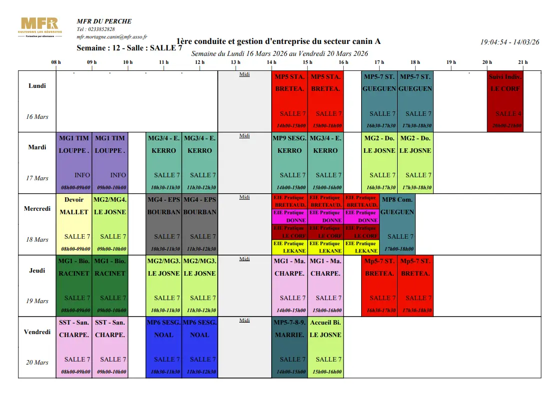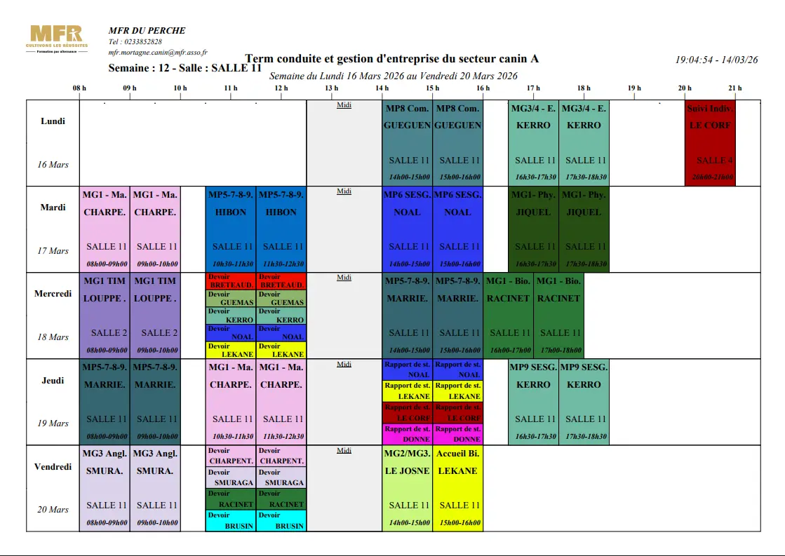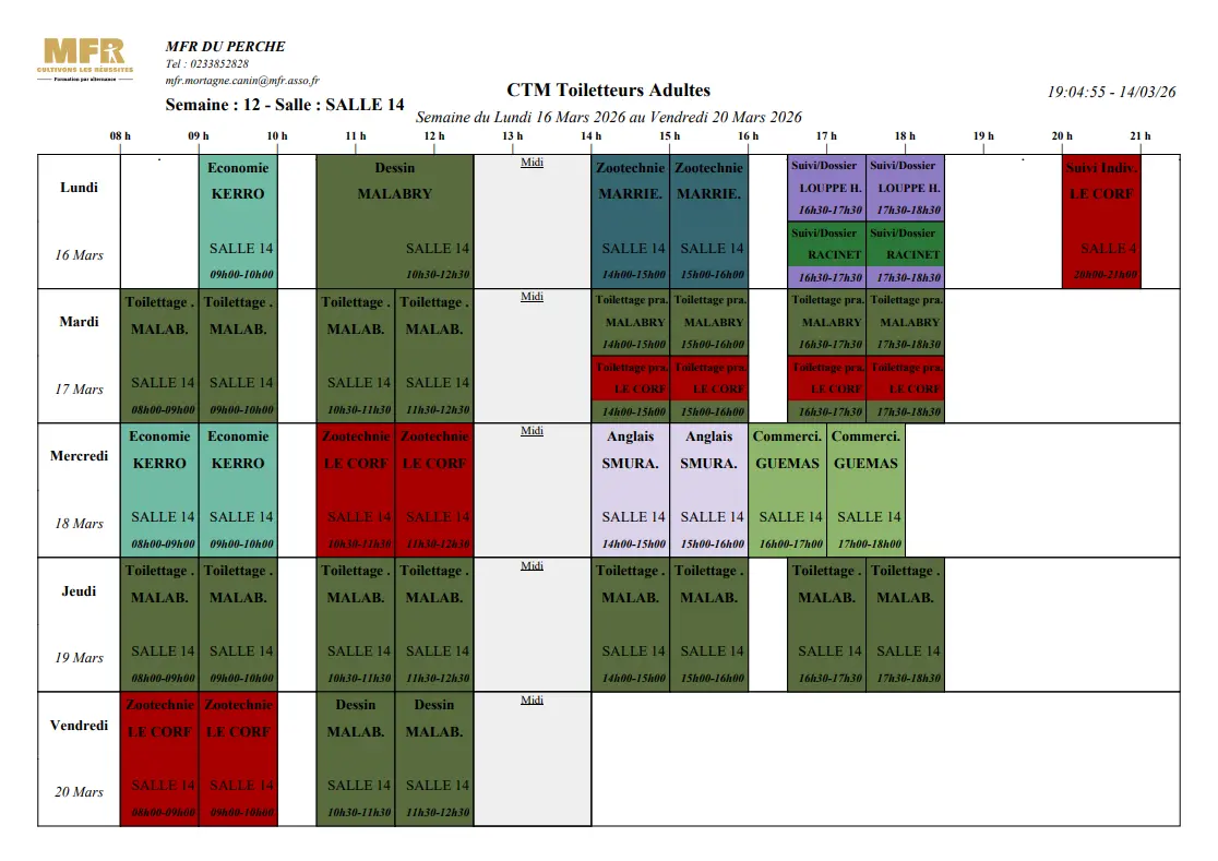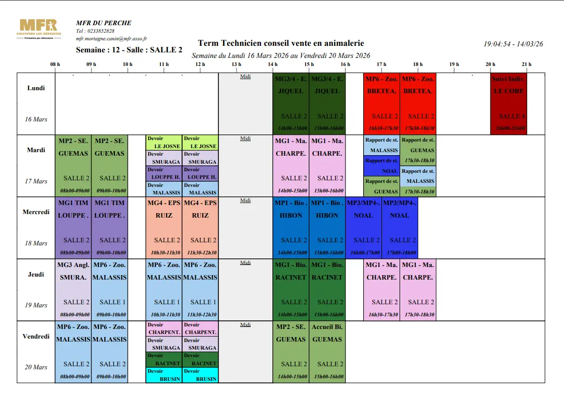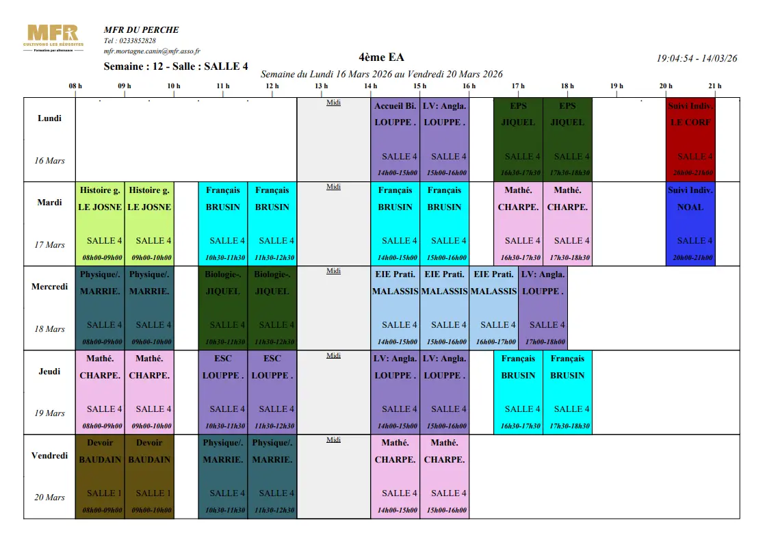 Classe Présente: 4e, 1CFA, 1CFB, 2CV, TCFA, TCV, Toil ad, BM
