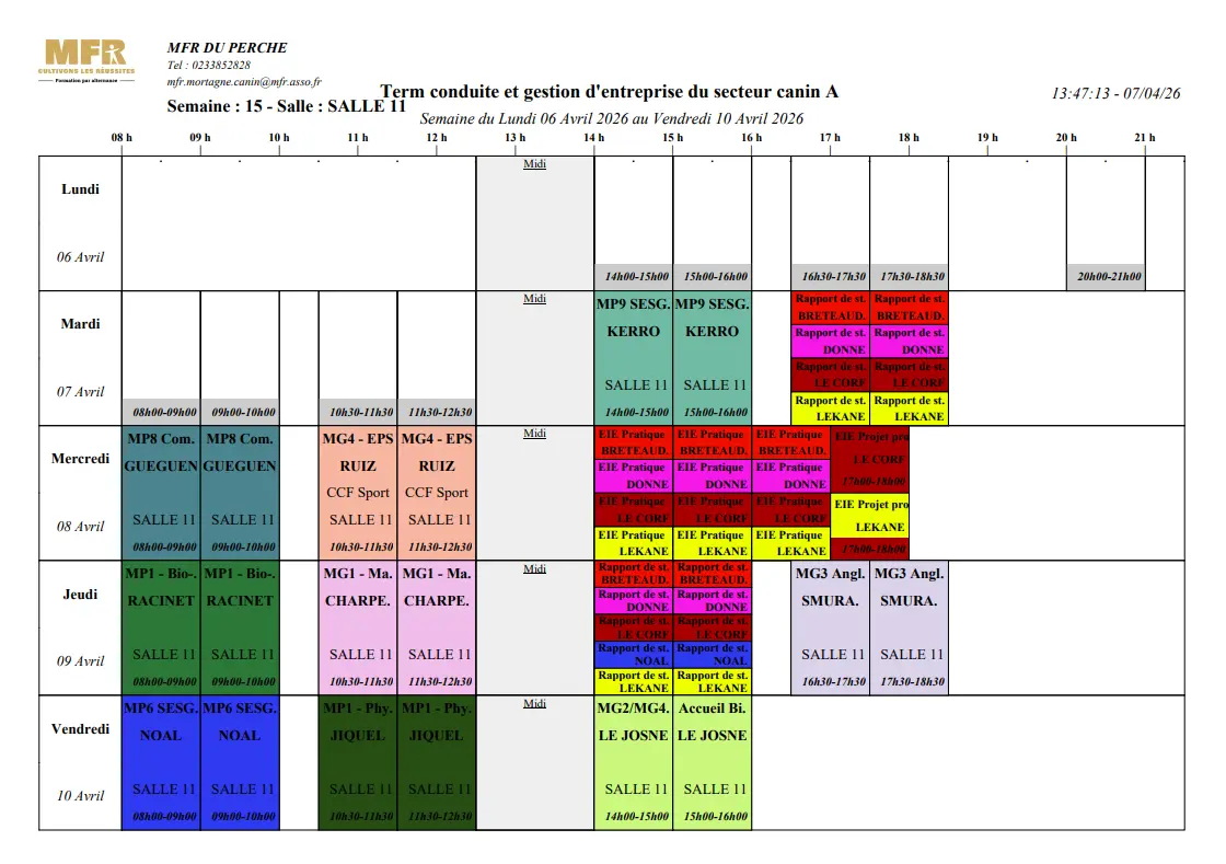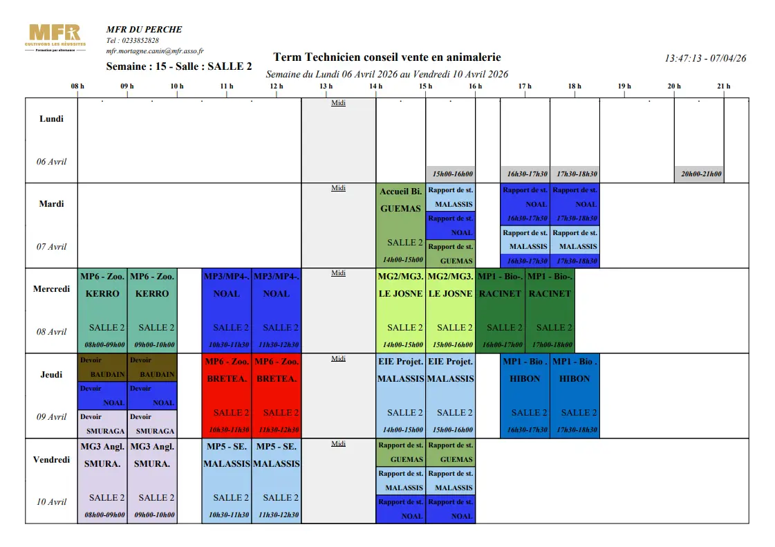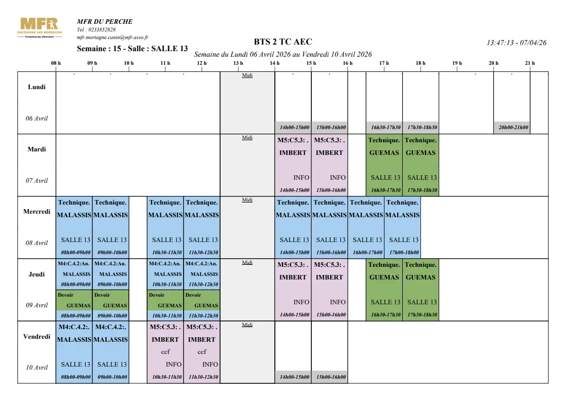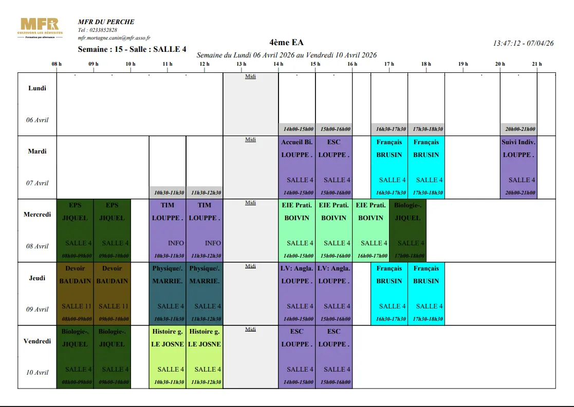 Classe Présente: 4, 2CFA, 1CFA, TCFA, TCFB, TCV, BTS, Toil Ad