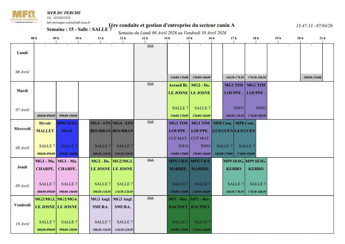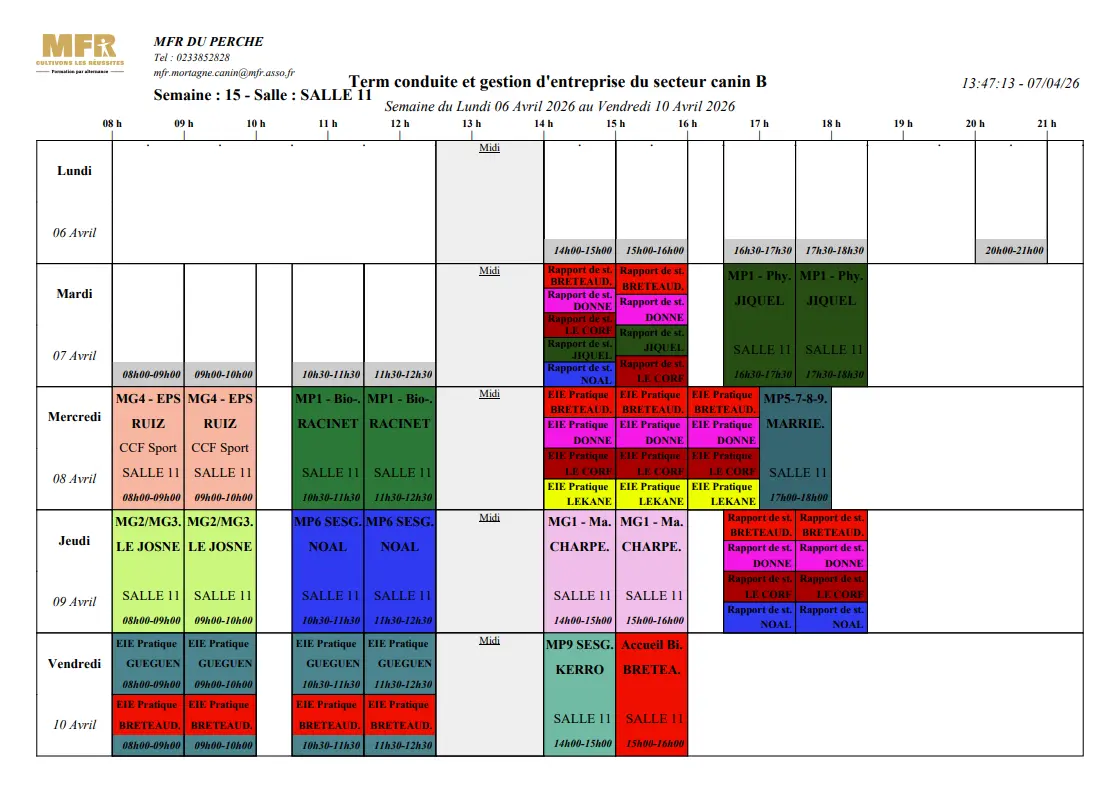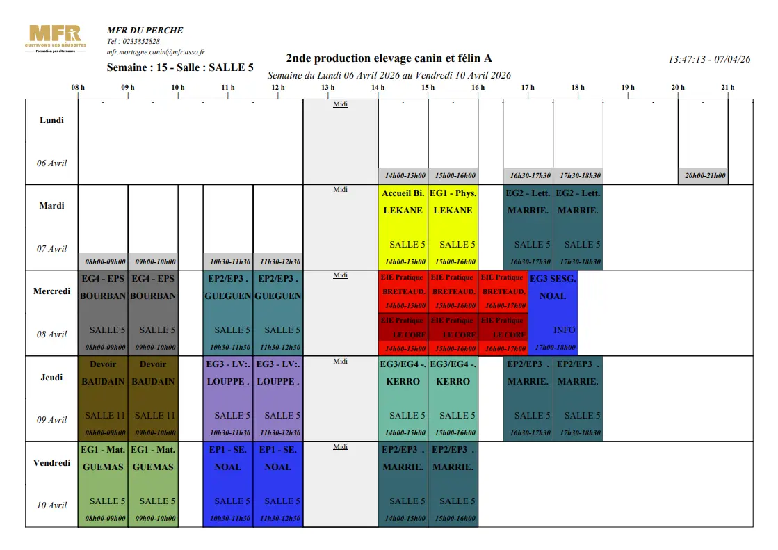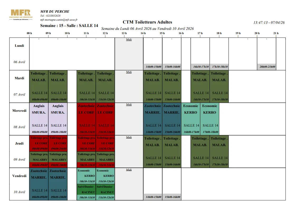 Classe Présente: 4, 2CFA, 1CFA, TCFA, TCFB, TCV, BTS, Toil Ad