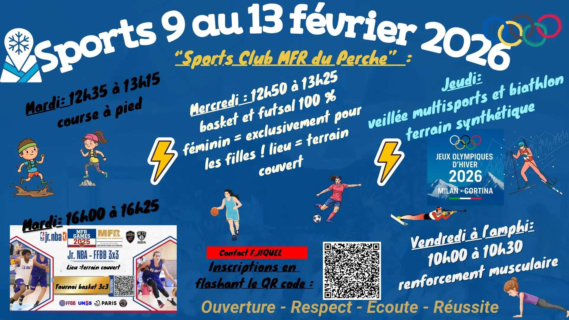 Découvrez les activités sportives proposé et organisé par la MFR pendant la semaine du 09 au 13 Février