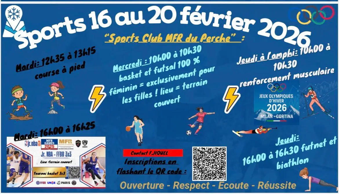 Découvrez les activités sportives proposé et organisé par la MFR pendant la semaine du 16 au 20 Janvier