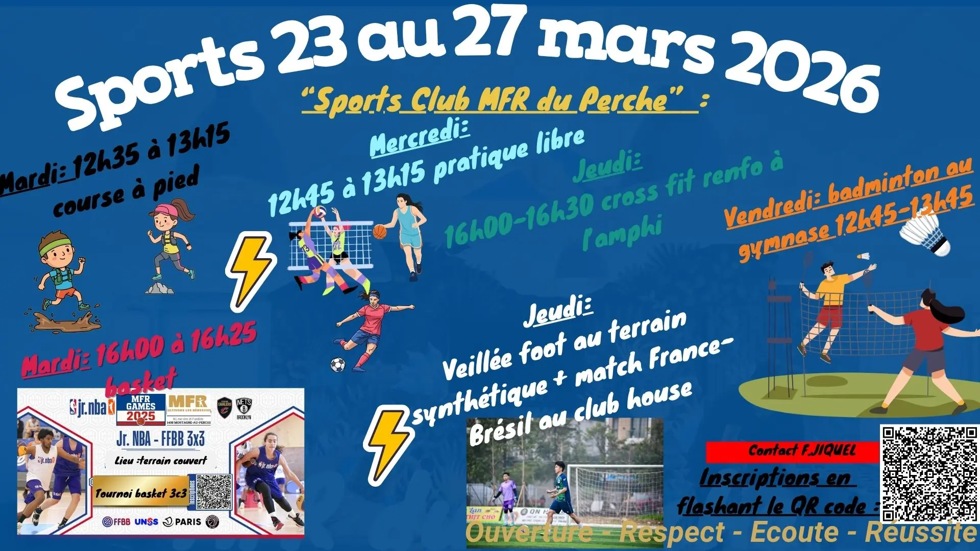 Découvrez les activités sportives proposé et organisé par la MFR pendant la semaine du 23 au 27 Mars
