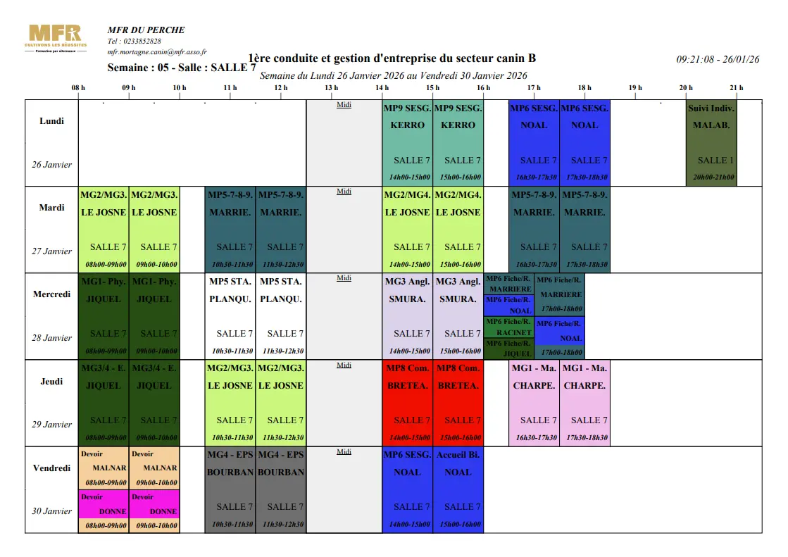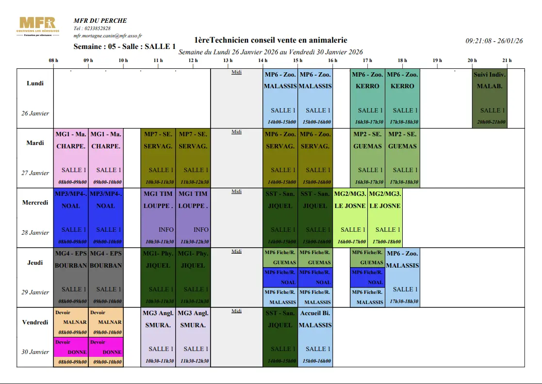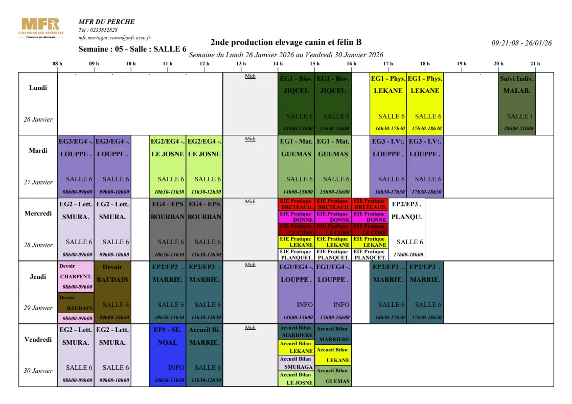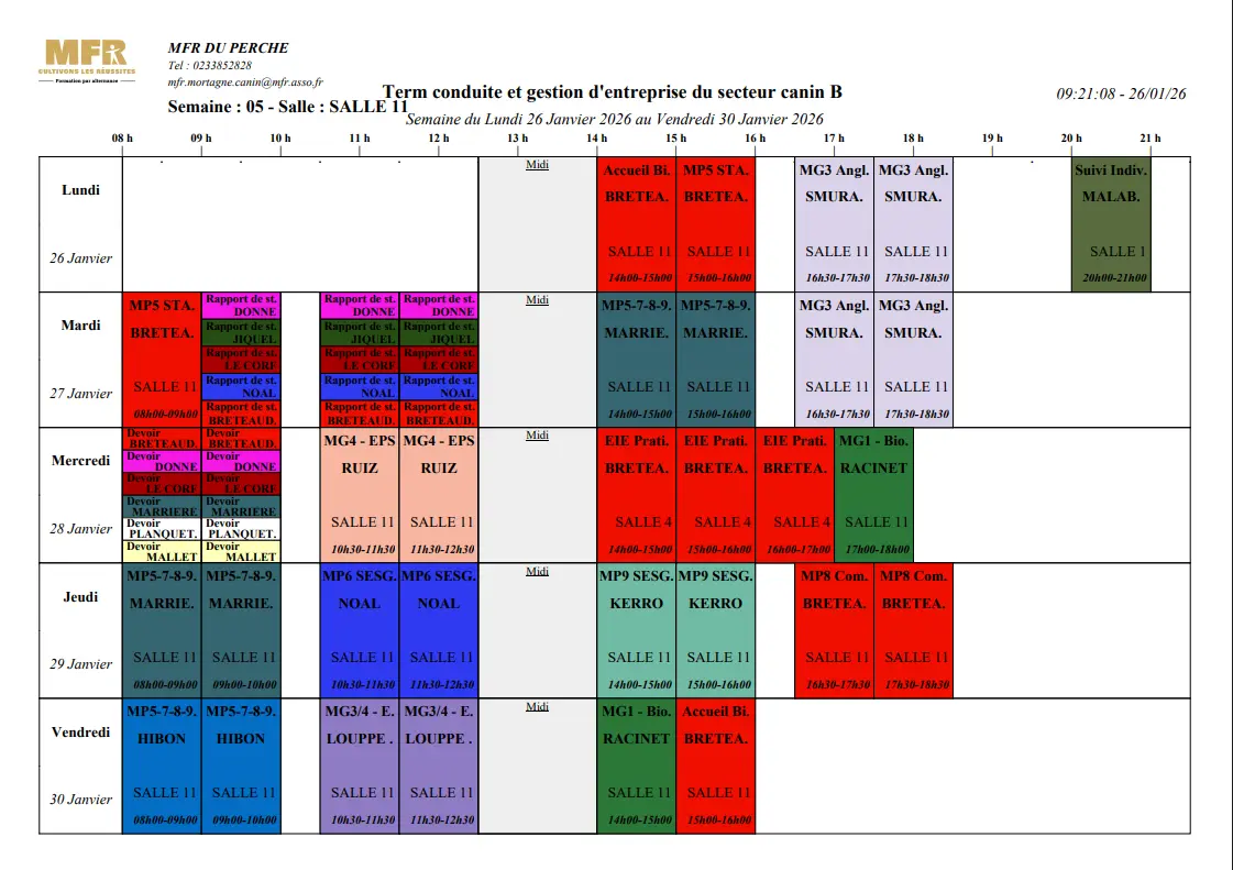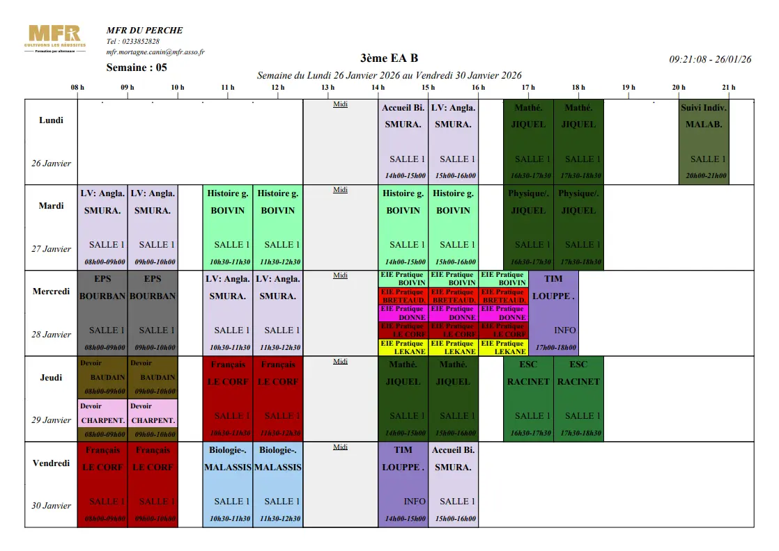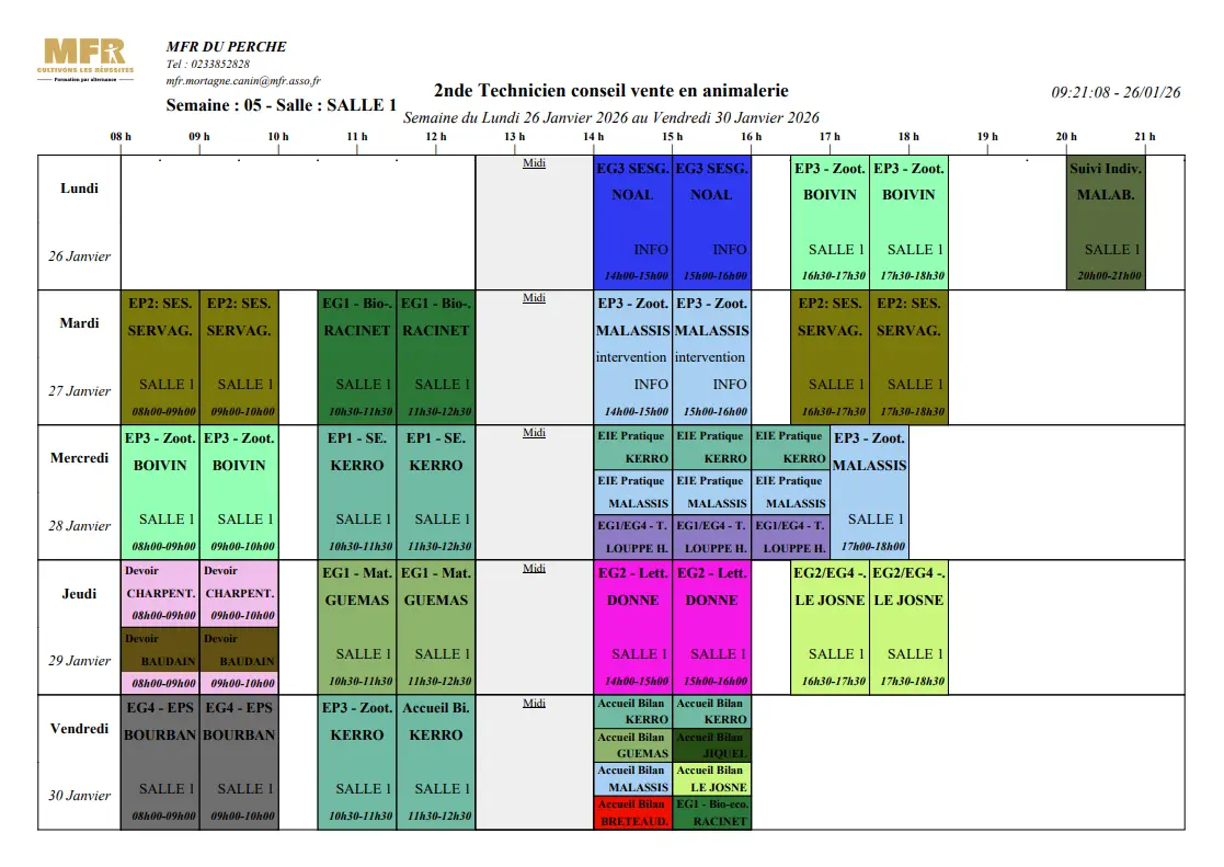 Planning 26/01-30/01