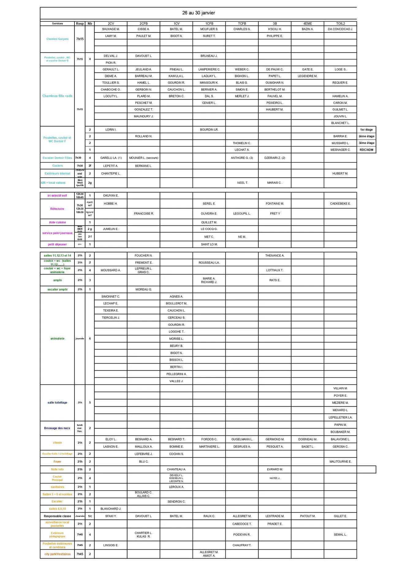 Découvrez les services de la semaine du 26 au 30 Janvier.
